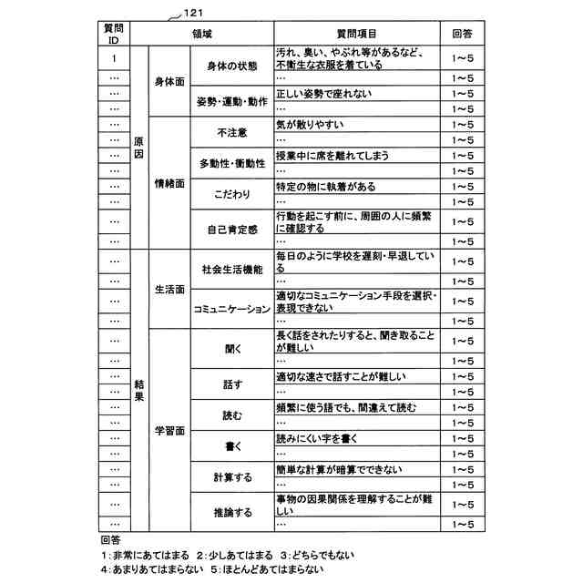 (2)上記(1)に記載の指導情報の生成方法において、各質問は複数の領域に分類されており、各領域に分類された質問に対する回答を示す前記回答情報に応じた指導情報を生成してもよい。