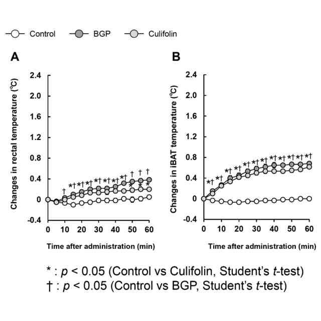 一方で、新たな抗肥満戦略として、食品成分による温度感受性(TRP)チャネルをターゲットとした戦略が注目されている。TRPチャネルは寒冷刺激の受容体として知られ、受容された寒冷刺激は褐色脂肪細胞における熱産生を誘導し、体温維持に寄与する。褐色脂肪細胞が持つ熱産生活性及びエネルギー消費活性は、生物個体の体温調節能に加えて、エネルギーを消費しやすい体質に変えることによる肥満や代謝性疾患の予防にも役立つことが期待されている。