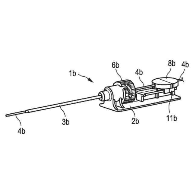遠位側にキャピラリチューブ(3から3i)が設けられているキャピラリハウジング(2から2h)を備え、カテーテルチューブ(4から4i)を備え、前記カテーテルチューブ(4から4i)は、前記キャピラリチューブ(3から3i)内に近位側で挿入され、前記キャピラリチューブ(3から3i)から遠位側に部分的に突出しており、前記カテーテルチューブ(4から4i)は、前記キャピラリチューブ(3から3i)内に限定的に直線変位可能に配置され、前記キャピラリチューブ(3から3i)および前記キャピラリハウジング(2から2h)に対して前記カテーテルチューブ(4から4i)を着脱可能に固定するための手動作動可能なクランプ装置を備えており、