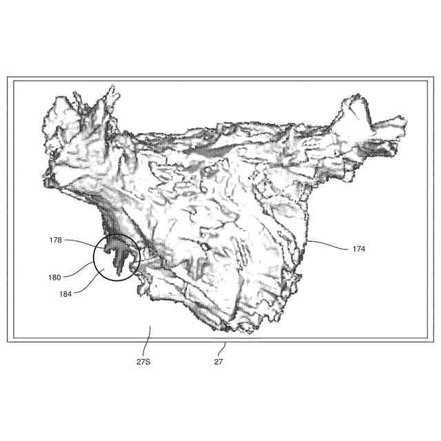 前記ユーザからの前記入力を受信することは、前記ユーザが、前記表面の前記EAマップの表示上の囲まれた二次元(2D)領域を囲む境界を描くことを含み、前記所定のグループは、前記閉じた2D領域として基部を有するプリズム内の前記空洞ボクセルを含む、請求項3に記載の装置。