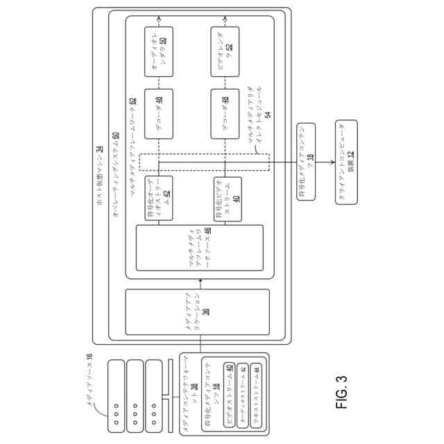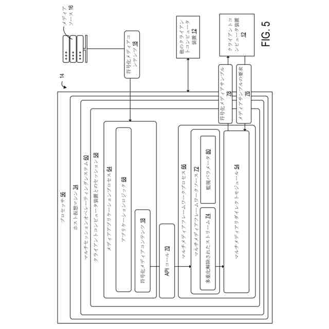 一例において、メディアソース16は、サーバシステム14に対してローカルでもよく、サーバシステム14に含まれてもよい。別の例において、メディアソース16は、クライアントコンピュータ装置12及びサーバシステム14の双方に対してリモートでもよい。例えば、サーバシステム14は、ワイドエリアネットワーク(WAN)などの通信ネットワークを通じて遠隔メディアソースと通信するように構成されてもよい。特定の例として、エンドユーザは、ホストVM内で実行されるメディアアプリケーションと対話して、メディアソース16に記憶されたメディアを見るメディア体験をトリガすることができる。メディアアプリケーションは、例えば、メディアソース16から取り出されたメディアコンテンツのストリーミング及び表示を容易にするメディアストリーミングアプリケーションの形態をとってもよい。典型的には、ストリーミングビデオ及び/又はオーディオは、符号化されたメディア18としてサーバシステム14に送られ、ストリーミングビデオ及び/又はオーディオを再生しているメディアアプリケーションを実行するホストVMにより処理される。