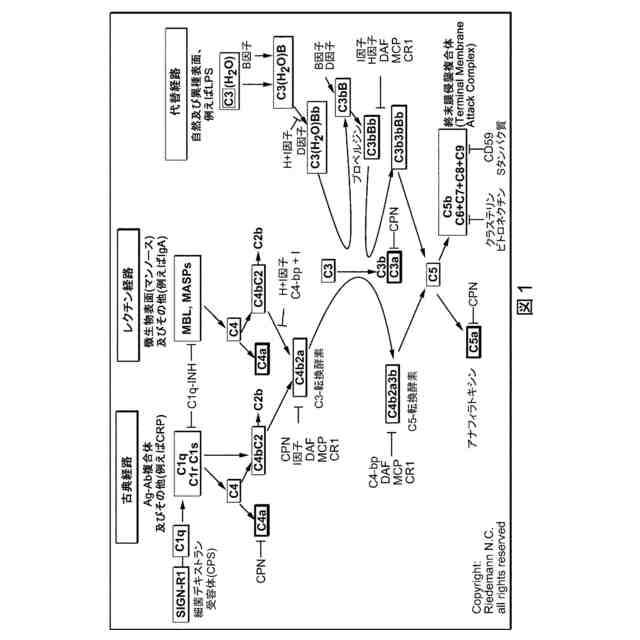 補体は、正常血清中に存在する耐熱性抗体による細菌の殺滅を補助するか又は「補完する」ことが判明したとき、1890年代に最初に発見された(非特許文献1)。補体系は、血液中に可溶性タンパク質として存在するか、又は膜結合タンパク質として存在する30を超えるタンパク質からなる。補体の活性化は、補体活性化経路として公知の、酵素反応の連続カスケードをもたらし、化学誘引からアポトーシスに及ぶ多くの生理反応を引き起こす強力なアナフィラトキシンC3a及びC5aの形成をもたらす。最初、補体は、強く迅速な反応が侵入病原体に対して行われる先天性免疫において大きな役割を果たすものと考えられていた。しかしながら、最近、補体は、病原体の再侵入を防ぐ免疫記憶を維持する際に、病原体の排除を助けるT細胞及びB細胞に関与する適応免疫にも重要な役割を果たし(非特許文献2;非特許文献3)、ヒトの病理的状態に関与する(非特許文献4;非特許文献5)ことがますます明らかになってきている。