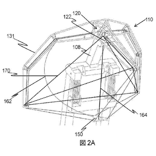 前記ケーブル取り付け点と前記ケーブルガイド要素との間に渡された複数のケーブル(141、142、143、144、145、146)と;
