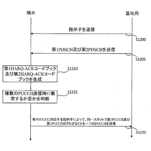 【解決手段】無線通信システムにおいて、端末が物理上りリンク制御チャネル(PUCCH)を基地局に送信する方法であって、第1PUCCHに関連した第1HARQ-ACKコードブックを生成する段階、第2PUCCHに関連した第2HARQ-ACKコードブックを生成する段階及び複数の指示子に基づいて1つのスロットにおいて第1PUCCH及び第2PUCCHを同時に基地局に送信するか又は第1PUCCH及び第2PUCCHのうちいずれか1つのPUCCHを基地局に送信する段階を含み、第1PUCCH及び第2PUCCHは、異なる値を有する第1指示子及び第2指示子にそれぞれ対応し、1つのPUCCHは、第1及び第2指示子に基づいて第1PUCCH又は第2PUCCHの中から決定される。