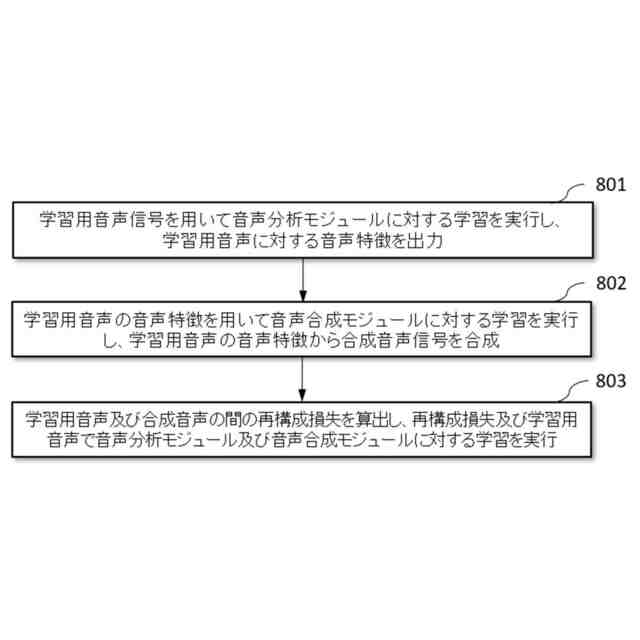 学習用音声を示す学習用音声信号を用い、前記学習用音声信号に対する音声特徴を出力するように音声分析モジュールに対する学習を実行し、前記学習用音声に対する音声特徴を出力する音声分析モジュール(103)と、