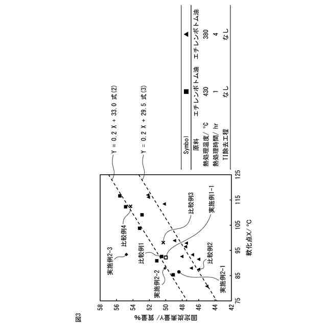 一方で、石油系重質油(特にエチレンボトム油)はQIをほとんど含まないため、QIが生成しない条件で石油系重質油を熱処理することで、QIの除去又は低減工程なしで実質的にQIを含有しない石油系ピッチの調製が可能である。実際に、特開昭60-92388号公報(特許文献2)では、QIの除去又は低減工程なしで石油系重質油からQI含有量が1質量%以下の石油系ピッチが製造可能であり、得られる石油系ピッチは含浸ピッチとして好適に使用可能であることが報告されている。しかし、特許文献2に記載の石油系ピッチを含め、これまでに報告されている石油系ピッチの多くは、同等の軟化点を有するコールタールピッチに比べて固定炭素量が低い(特許文献2及び非特許文献1)。石油系ピッチの固定炭素量を向上させる方法として、蒸留等によってピッチ中の軽質分を除去する方法があるが、同時に軟化点及び粘度も上昇するため含浸性が低下する問題がある。したがって、従来の方法では、良好な含浸性と高い固定炭素量を両立する石油系ピッチを製造することは困難である。