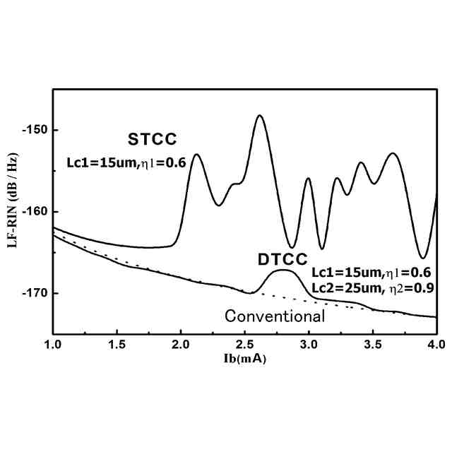 特許文献1のVCSELは、外部共振器が無い場合に比べて帯域を広げることができ、高速変調が可能となるが、メイン共振器と外部共振器の共振波長が実質的に等しく(具体的には波長差Δλが1nm程度)であることから、単一モード発振が不安定であり、また雑音レベルに改善の余地があった。さらに、単一モード発振のためには、酸化狭窄の開口を数μm程度まで微小化する必要があり、電流密度が大きくなることで信頼性に大きな問題があった。