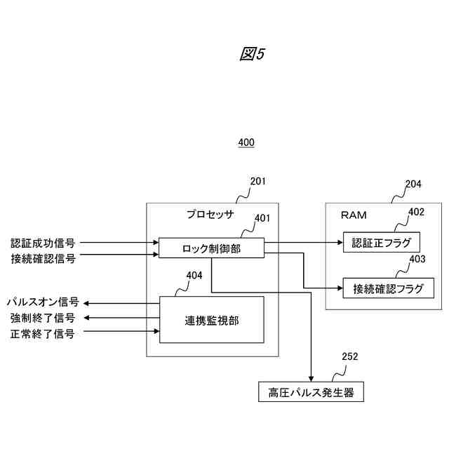 前記認証成功信号及び前記接続確認信号を受信した場合に、前記高圧パルス発生器の動作モードを、前記低出力モードから前記通常出力モードへと切り替える、