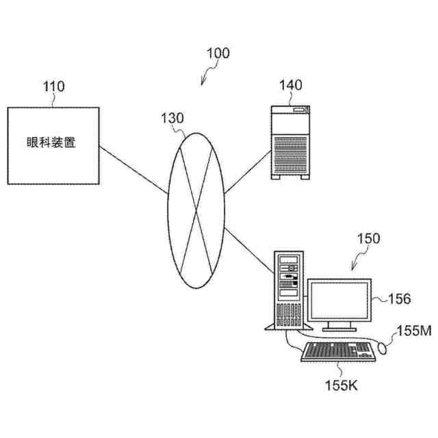 ビューワ150は、管理サーバ140により取得した眼底画像や解析結果を表示するディスプレイ156、操作に供されるマウス155M及びキーボード155Kを備える。