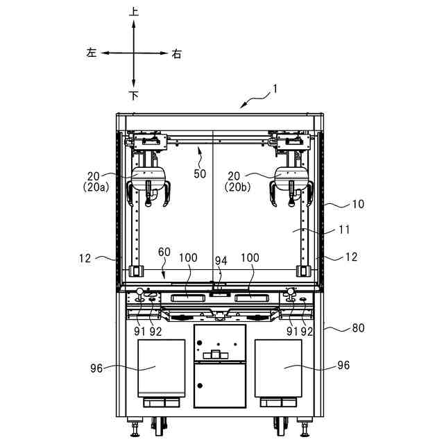 特許文献1に記載の景品取得ゲーム装置は、遊戯者が景品取得ゲームをプレイする第1プレイエリアを収容空間内の左側に形成し、収容空間内の右側に第2プレイエリアを形成している。第1プレイエリアと第2プレイエリアでは、それぞれに対応させて第1景品取得部と第2景品取得部が移動可能となっている。第1プレイエリアと第2プレイエリアは、同じ大きさであるため、第1景品取得部と第2景品取得部の収容空間内での可動範囲も同じ大きさになっている。第1プレイエリアと第2プレイエリアの大きさは変更することができない構造になっているため、第1景品取得部と第2景品取得部の収容空間内での可動範囲の大きさも変更できない。その一方で、サービス提供者(例えば、店員等)は、収容空間内で景品の種類やサイズ等に合わせて多様なゲームプレイができるように、左右で異なる大きさのプレイエリアに変更したい場合があった。