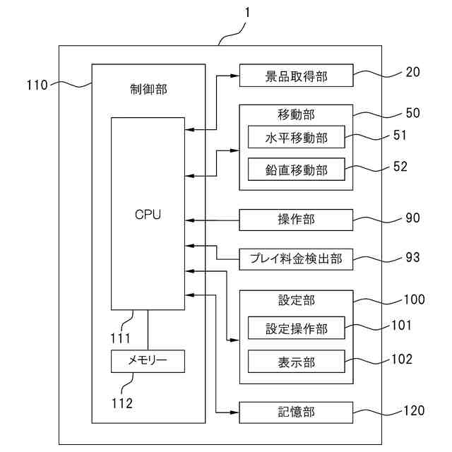 本実施形態に係る景品取得ゲーム装置1の構成を示すブロック図である。