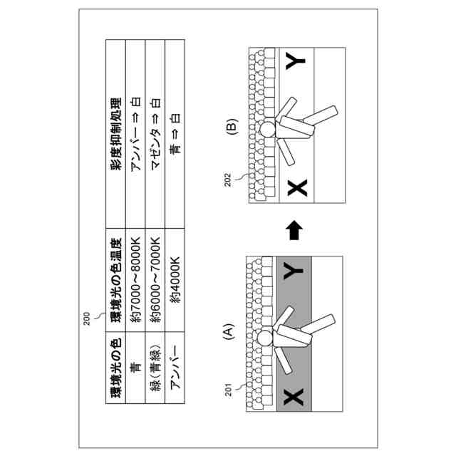 LED(Light Emitting Diode:発光ダイオード)を使用したLED光源を検出し、検出したLED光源の種類に基づいて、色補正を行う技術がある。この技術を用いてスタジアムなどで撮影を行う場合、環境光とLED光源であるLED看板の色が異なるため、環境光にAWB(Auto White Balance)を実行すると、LED看板の画像が色づいてしまい、自然な色合いの画像にならない。
