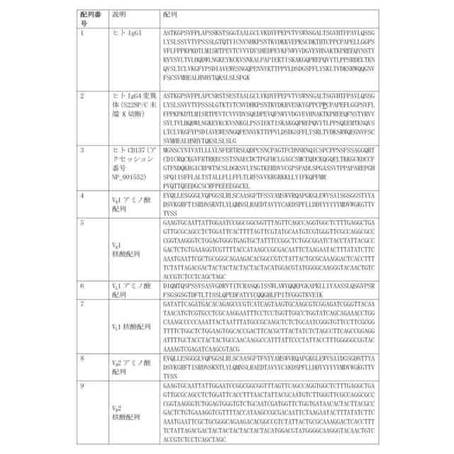 factor receptor superfamily member 9」(TNFRSF9)、4-1BBおよび「induced by lymphocyte activation」(ILA)としても知られている)は、腫瘍壊死因子スーパーファミリーに属する膜貫通型共刺激性受容体タンパク質である。CD137は、TCR活性化で誘導されるT細胞共刺激性受容体である(Nam et al., (2005) Curr Cancer Drug Targets 5:357-363; Watts et al., (2005) Annu Rev Immunol 23:23-68)。活性化CD4+T細胞およびCD8+T細胞上での発現に加えて、CD137はCD4+CD25+制御性T細胞、活性化