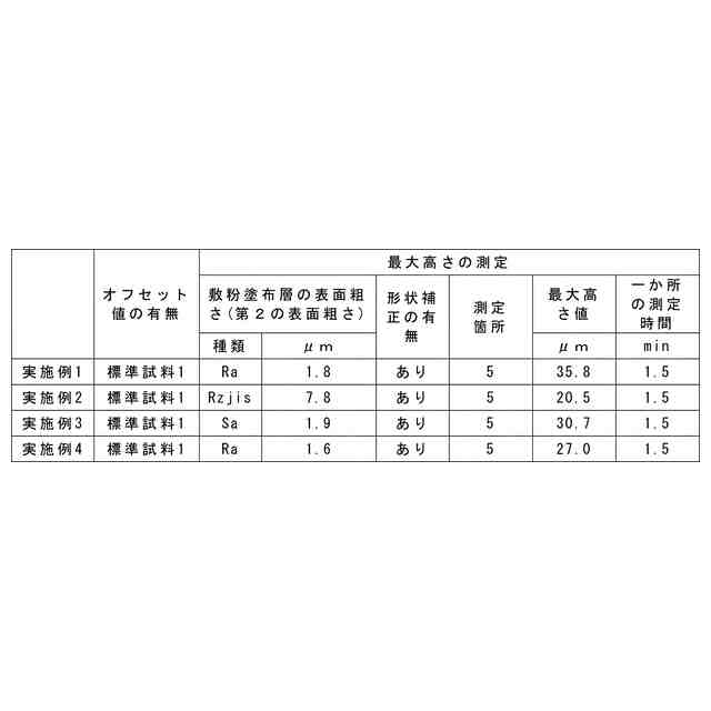 次に、第1測定工程で得られた敷粉塗布層の体積から予め定められたオフセット値を引く工程を行う。オフセット値とは、測定値に一律に生じる誤差を取り除くため、基準からのズレを相殺する補正値のことである。