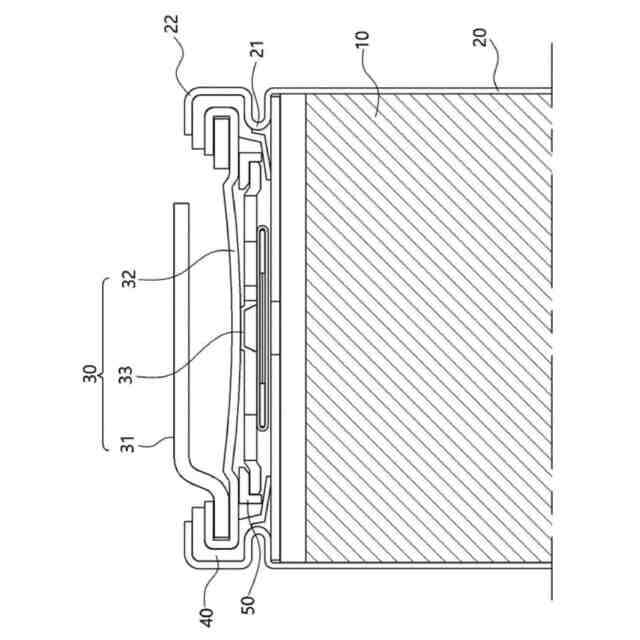 また、電池ケースに内蔵される電池組立体は、正極/分離膜/負極の積層構造からなる充放電が可能な発電素子であり、活物質が塗布された長いシート状の正極と負極との間に分離膜を介して巻き取ったフォールディング型電池組立体(ゼリーロール)と、所定サイズの多数の正極と負極とを分離膜が介在された状態で順次積層したスタック型電池組立体に分類される。その中、ゼリーロールは製造が容易であり、重量当たりのエネルギー密度が高いという利点を有する。