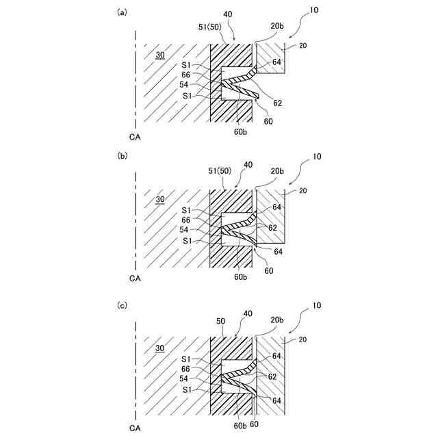 本開示は、組み付け時に第2のシール部から第1のシール部に伝達される反力の径方向成分を小さくすることを目的とする。