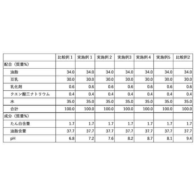 なお、特許文献1は、脂質が1.5g/100g以下である豆乳飲料が記載されており、油脂含量10~50質量%である起泡性水中油型乳化物(ホイップクリーム)に係る本発明を完成させる上で、特許文献1は参考とならなかった。また、特許文献2に記載された起泡性水中油型乳化物は、「カゼイン塩を含む乳タンパク素材」を必須としており、植物性たん白質を含有する本発明の植物ベースの起泡性水中油型乳化物を完成させる上で、特許文献2は参考とならなかった。