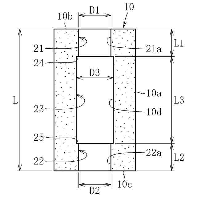 従来の逃げ部を有する焼結軸受では、前記したように、焼結工程後にサイジング工程を行うものであり、外径を絞り込むことで逃げ部を形成することになる。このため、摺動面を有する摺動部と、逃げ部との境界部がなだらかに形成されることになる。