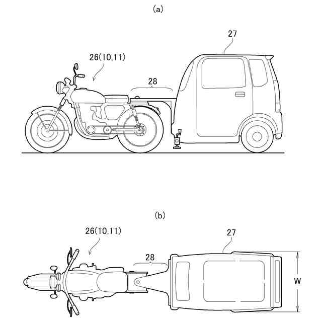 従来における自動二輪車は、車体の前後に二つの走行車輪を備えて左右のバランスを取りながら運転走行する構造であることから、旋回時においては車体および運転者の重心を傾けることによってキーン走行や車線変更が容易且つ瞬時にできるものではあるが、駐停車時や取り廻し時においては車重のバランスを運転者自身が支えて行なわなければならず、非力な年配者や女性にとっては容易に操作できるものではなかった。