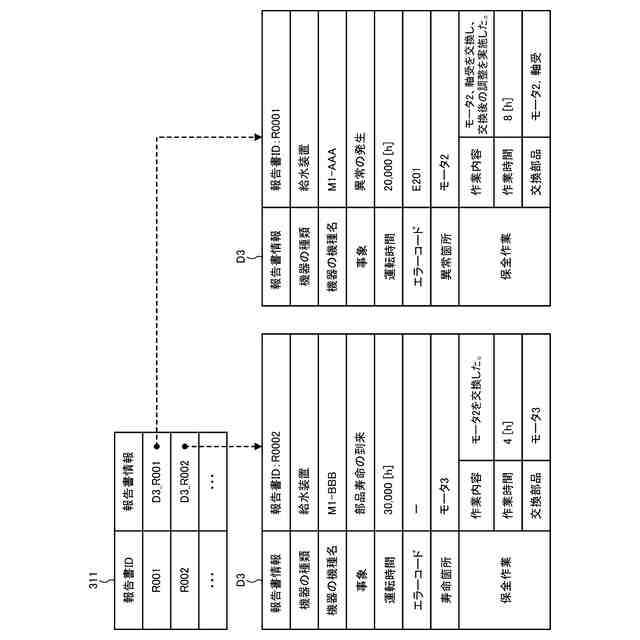 報告書データベース311の一例を示すデータ構成図である。