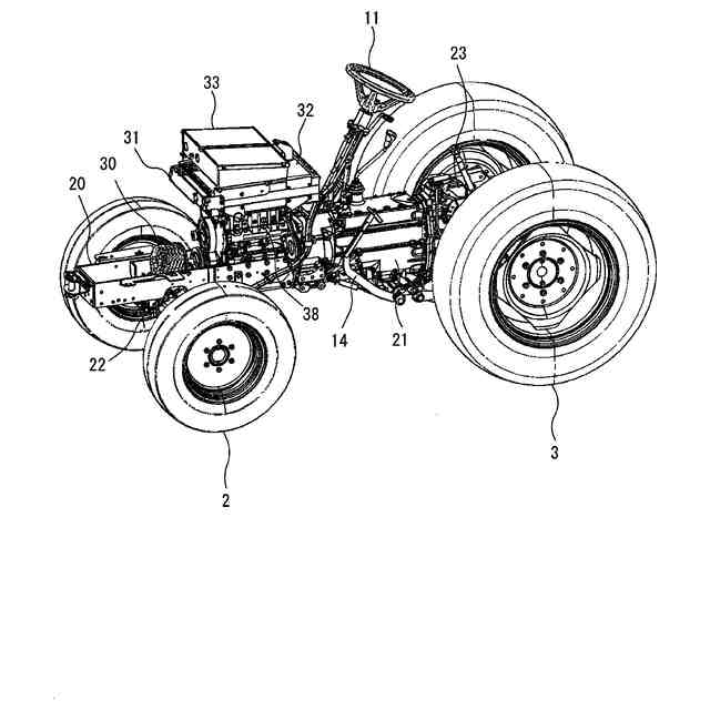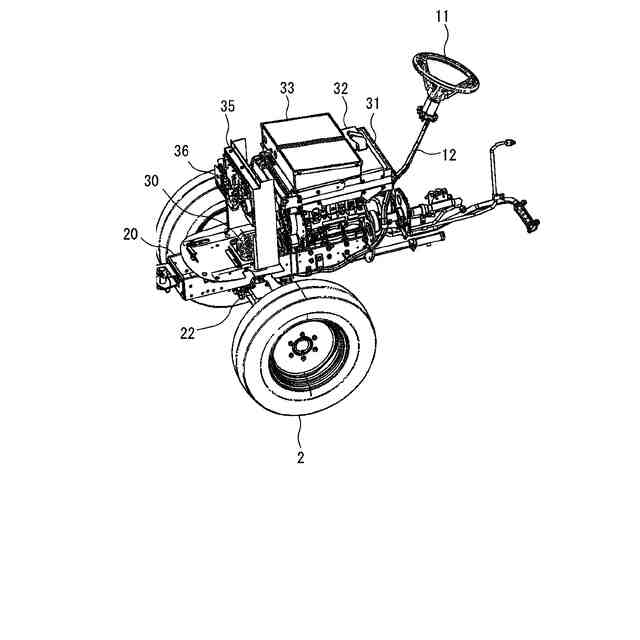 【解決手段】ボンネット(4)に後輪(3)を駆動する電動機(30)を格納し、操縦部(5)の操縦席(10)の前側にステアリングホイール(11)を設け、ステアリングホイール(11)の操作に応じて前輪(2)を操舵する操舵装置(45)を設け、電動機(30)が駆動している場合には、電動機(30)で駆動されるポンプ(39)を介して操舵装置(45)に作動オイルを給油し、電動機(30)の駆動が停止している場合には、操舵装置(45)内の作動オイルがポンプ(39)に排油されない構成とした。