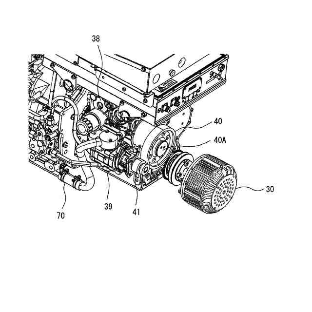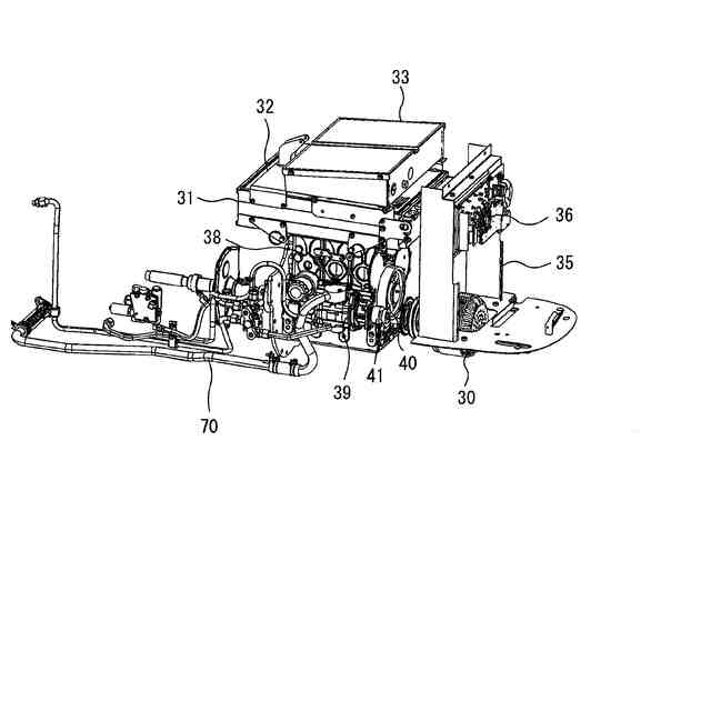 請求項2記載の発明は、前記電動機(30)とポンプ(39)の間にクラッチ(41)を設け、前記電動機(30)が駆動している場合には、前記クラッチ(41)が一方向に回転し、前記電動機(30)の駆動が停止している場合には、前記クラッチ(41)が一方向と逆さの逆さ方向には回転しない請求項1記載の作業車両である。
