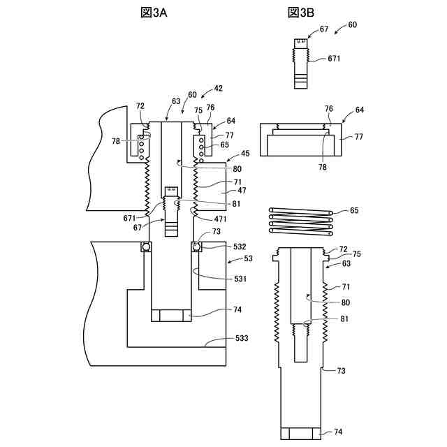 第2部品に設けた回転支持部を介して該第2部品に支持され該雄ねじ部を回転させる操作で軸方向の位置を維持する取付面と、