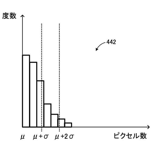 ピクセル数のヒストグラムに図8に示す切断正規分布の平均値から標準偏差だけ離れた位置と平均値から標準偏差の2倍だけ離れた位置を示した図である。