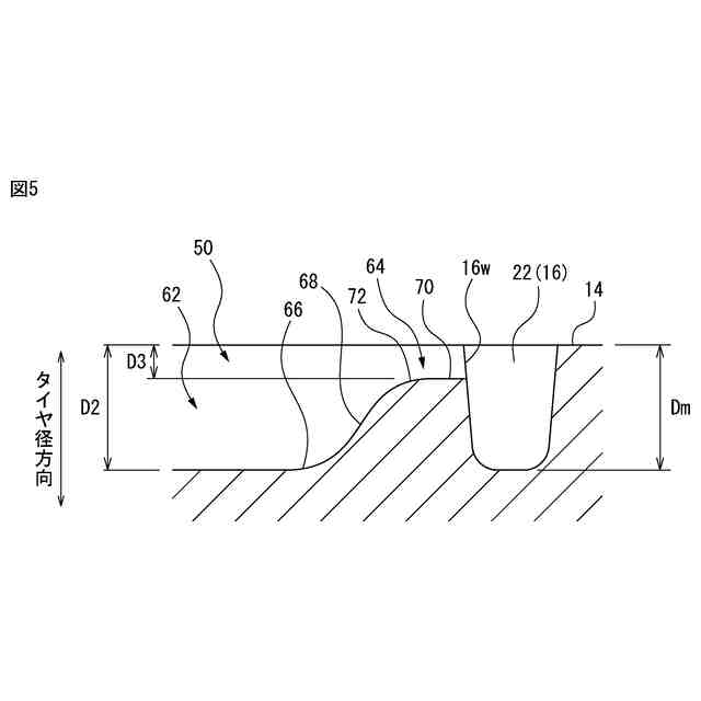 変形例(5)に係るタイヤの図2におけるXVI-XVI線に沿った部分拡大断面図である。