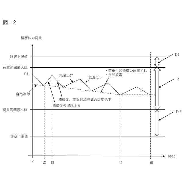 図2は、本実施形態に係る荷重付加機構の作動停止後における積層体の荷重の推移の一例を示す図である。