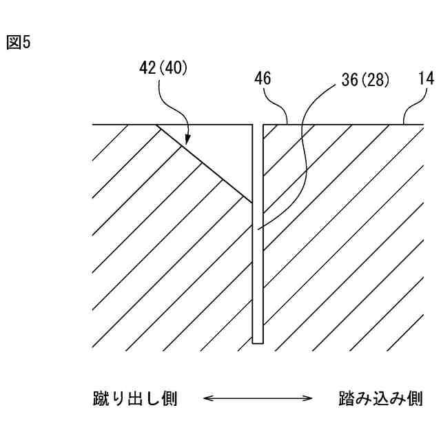 前記第1面取り部は、前記内側傾斜サイプの蹴り出し側に設けられており、