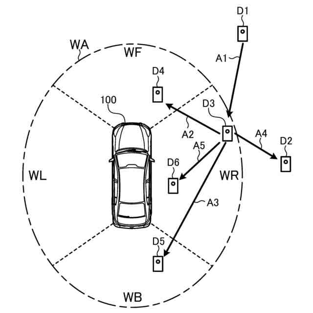 車両の周辺において、機器を所持したユーザが存在する場合の一例についての説明図である。