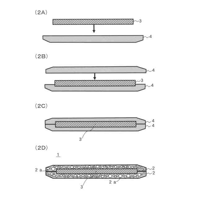 図2は、第1実施形態に係る延焼防止シートの製造過程を示す縦断面図(2A,2B,2C,2D)を示す。