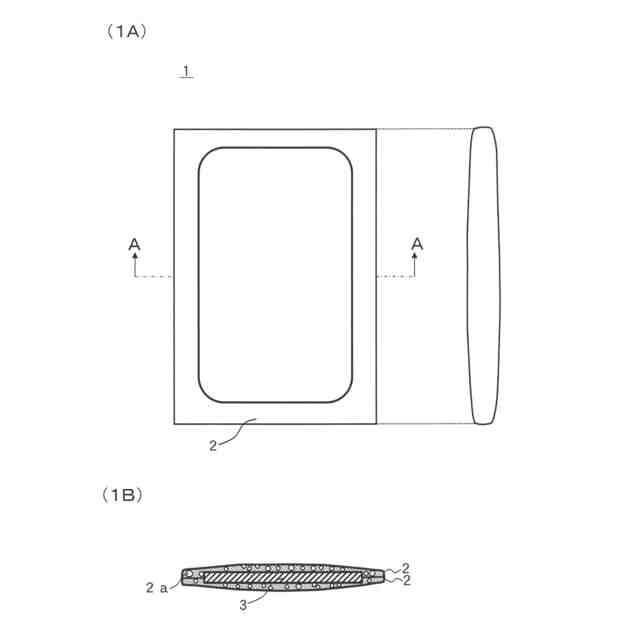 図1は、第1実施形態に係る延焼防止シートの正面図および側面図(1A)、ならびにA-A断面図(1B)を示す。