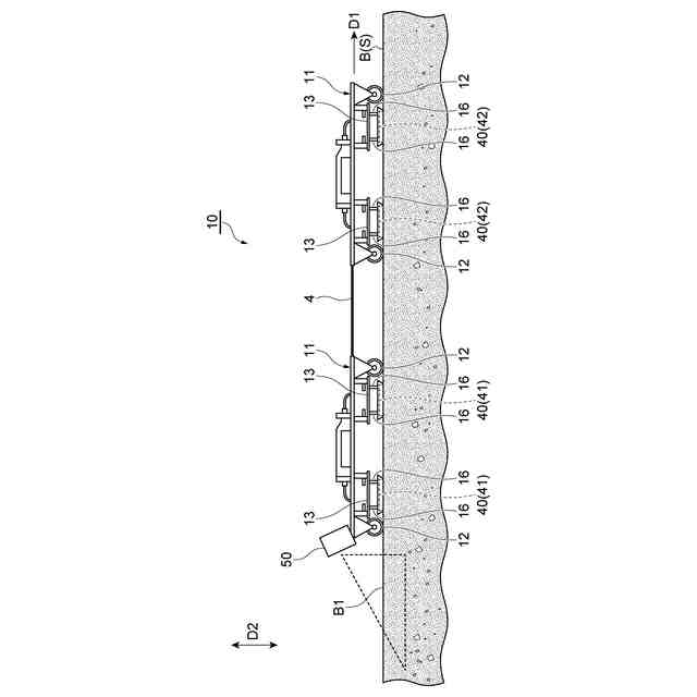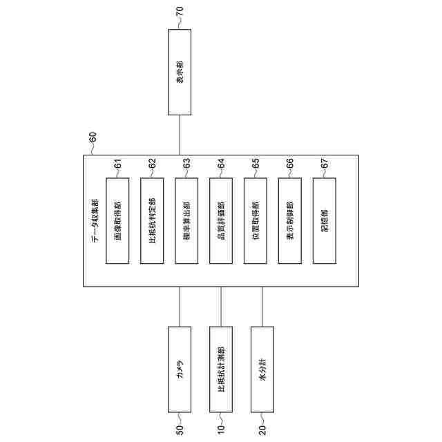 (2)上記(1)において、比抵抗測定部は、牽引部によって移動方向に沿って移動してもよい。カメラは、比抵抗測定部よりも移動方向とは反対側において比抵抗測定部とともに移動方向に沿って移動してもよい。この場合、比抵抗測定部が前方に移動するときに、カメラは比抵抗測定部よりも後方に位置する。そして、カメラは、比抵抗測定部の後方において比抵抗測定部とともに移動方向に沿って移動する。よって、比抵抗の測定、および盛土の撮影を牽引しながら実行できるので、盛土の評価を効率よく行うことができる。