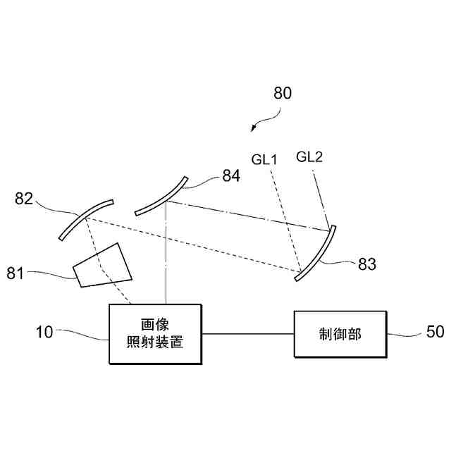 上記のような従来技術の画像投影装置では、液晶表示装置等による画像照射装置が画像を含んだ照射光(以下、「画像表示光」)を照射し、1枚もしくは複数枚の自由曲面ミラーで照射光を反射させて、空間中に画像(虚像)が結像するように運転者等のアイボックスに到達させる。これにより、運転者等はアイボックスに入射した画像表示光によって、車両前方の奥行き方向における結像位置に画像が表示されているように認識することができる。特許文献1には、このような従来技術に係るHUDの一例が開示されている。