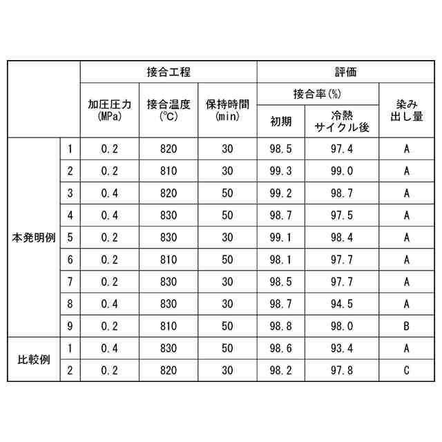 一方、接合材に含有されるAg粉の酸素濃度が低い場合には、液相の流動性が良く、接合材の染み出しが発生しやすくなり、銅板表面のろう染みが発生しやすくなるが、冷熱サイクル負荷後の接合率が低下することを抑制できる。