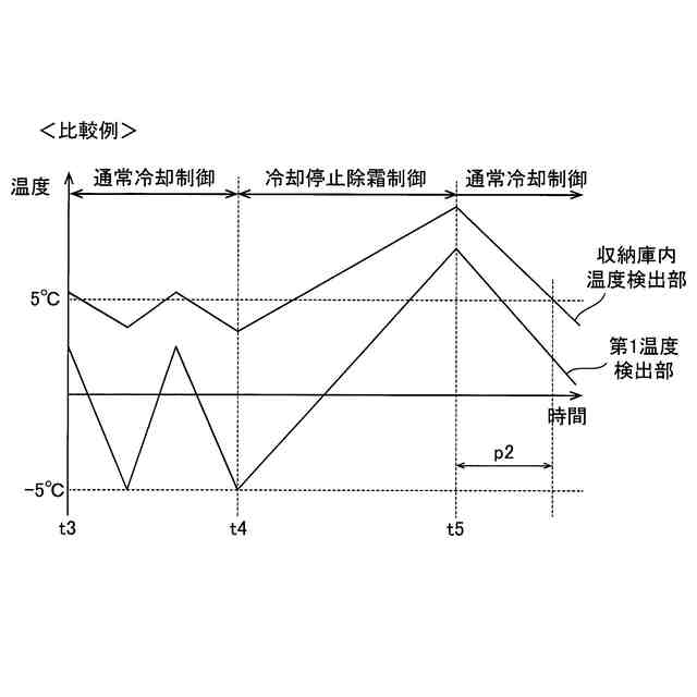 前記除霜時冷媒温度は、前記収容庫内の冷却時の温度よりも高くかつ前記収容庫内の目標温度よりも低い温度であり、