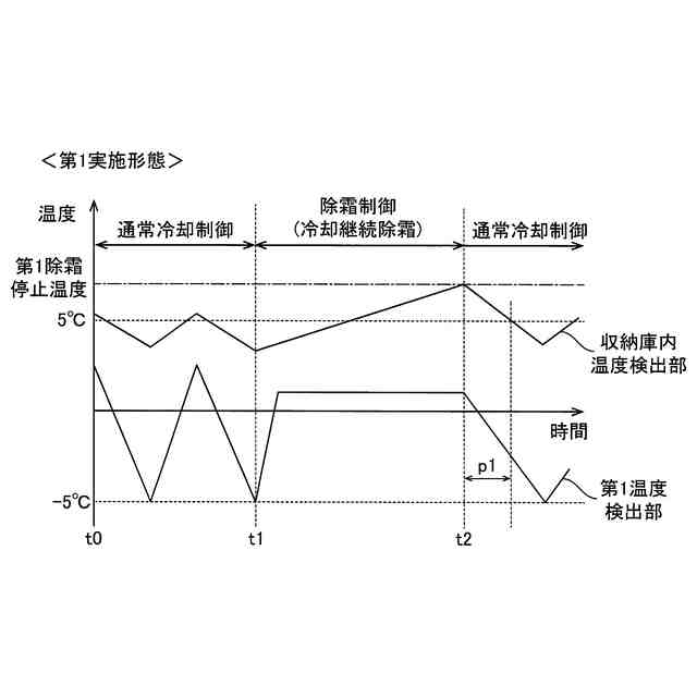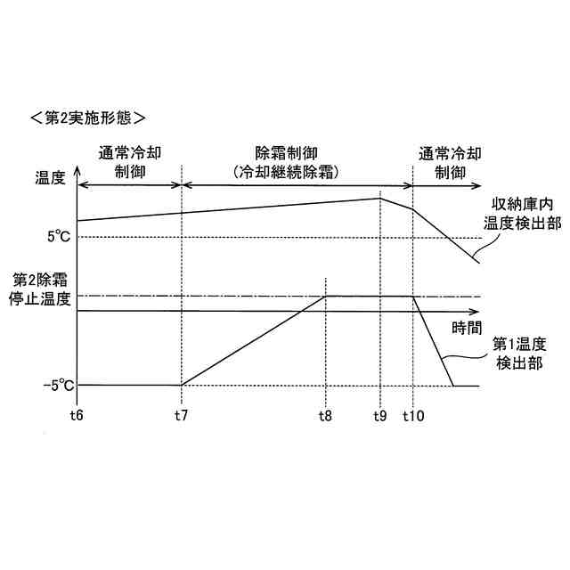 前記除霜時冷媒温度は、0℃よりも高くかつ前記収容庫内の目標温度よりも低い温度であり、