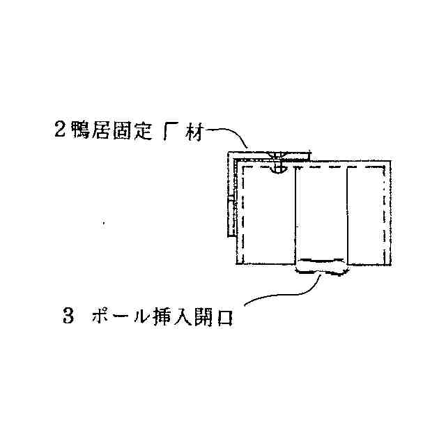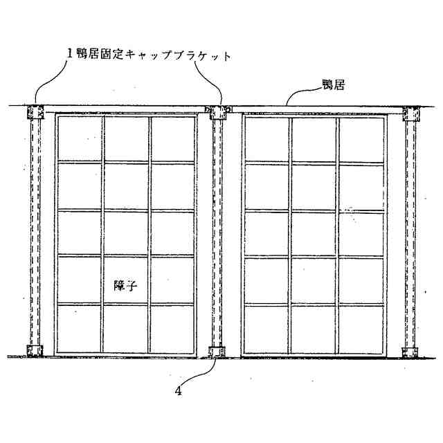 本発明部材上下キャップブラケットとつっぱり棒を組み合わせ鴨居の中間に設けた使用例を示す図である。