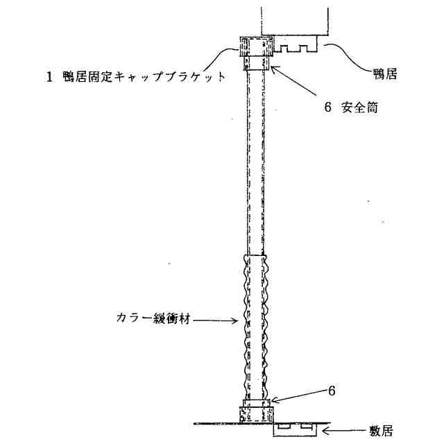 これを使用するときは、鴨居取り付けブラケットを鴨居側面に木ネジを介し固定、床ブラケット基盤下面に設けた差し込みプレートを畳み又床と敷居の隙間に差し込みブラケットを固定、上下キャップに収まる長さに準備したポールを床ブラケット基盤にポールを置き、ポール上部をキャップの周縁一部をカット施した開口から差し込み予めポールに挿入した安全筒二個を上下のキャップに差し込むとポールの外れを防止、ポールの半分くらいの高さにカラーの緩衝材を設けると暗い部屋でも分かりやすくポール手摺りを掴み易い。市販されている(つっぱり棒)も上下キャップ利用できる。