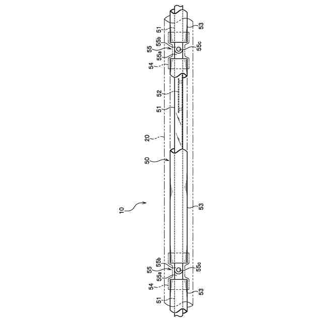 隣り合う二本の前記芯材は、少なくとも前記トンネルの延長方向に沿う水平軸線回りに傾動自在に連結されており、