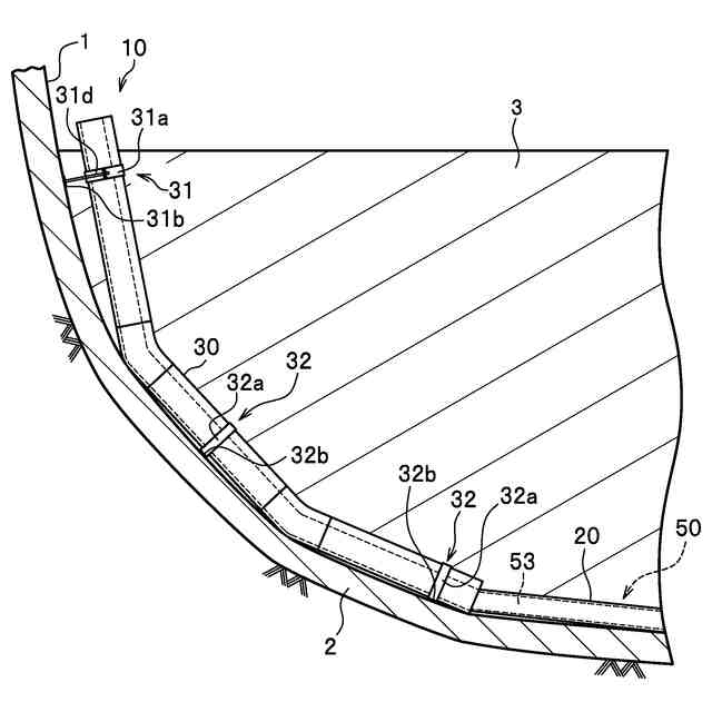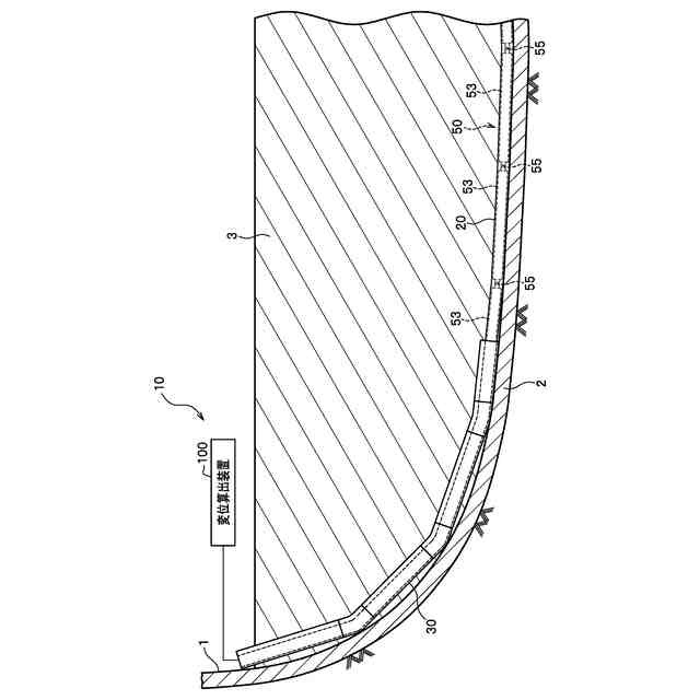 インバートの変位を計測する計測装置としては、埋め戻し土(路盤)下部に埋設した検知部からインバートの内面に亘ってチューブを延設しているものがある(例えば、特許文献1および特許文献2参照)。この計測装置では、インバートの変形により検知部の位置が変化したときの検知部内の液体の液面の高さの変化に基づいて、インバートの変位を計測するように構成されている。