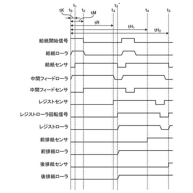 図6は、画像形成装置の通常動作における用紙搬送機構の動作状態及びタイミングセンサの検知状態を示すタイミングチャートである。