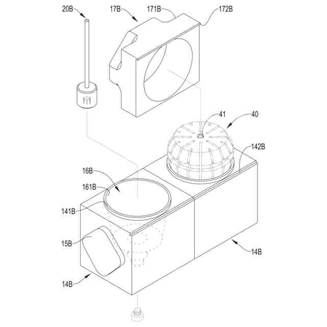 上記技術的特徴により、本発明のコレット収納装置は、前記本体上に少なくとも2つの外嵌部材を設置すること、及び各前記外嵌部材が異なる外径を有することにより、ユーザに各コレットを対応する外嵌部材に外嵌することによって異なるツールクランプ穴の寸法のコレットを前記本体の対応する位置に正確に収納させ、ユーザにコレットを取り出す際に前記本体の寸法記号を通じて寸法に対応するコレットを素早く見つけることができ、各コレットが同じ外観寸法を有すること又は長時間使用後に各コレットの外面の寸法記号が長期間の使用後に損傷して不明瞭になるために各コレットの寸法を正確に知ることができない状況を効果的に回避することができる。取り出したコレットがツールの寸法に対応するかどうかを知るために、各前記コレットを1つずつ使用するツールと組み合わせる必要がなくなり、使用が比較的便利で時間を節約することができる。さらに、本発明のコレット収納装置は、各組立ユニットに少なくとも1つの突き合わせ接合部を設置することにより、ユーザに必要に応じて複数の組立ユニットを組み立てることで、異なる空間(小さな空間や狭い空間など)又はコレットの数量要件で前記本体の体積と形状を柔軟に調整させることができ、長尺ストリップ状、L字型、十字型又は市松模様の配置などの多様な構造形態を形成させ、正確な収納、柔軟な配置及び実用性の向上が可能なコレット収納装置を提供する。