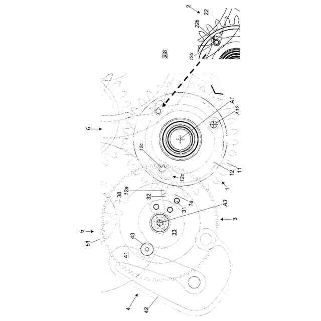 時計技術において、完全カレンダーが知られている。特に、非特許文献1は、50年代から知られている完全カレンダーの多数の例を包含する。非特許文献1には、とりわけ、時代の特徴である4つのインジケーションを有し、31本の歯の日付可動部がムーブメントの中央に配置される、ヴァシュロン・コンスタンタンのカレンダープレートの説明が含まれる。カレンダープレートは、筒車の回転の作用で、24時間で完全に一周する、駆動爪により周期的に作動され、筒車自身は、基本ムーブメントの駆動部材により駆動される。月可動部は、日付可動部に類似または同一の中間可動部により運ばれる爪の影響により、ひと月に一度アップデートされ、中間可動部は日付可動部と噛み合う。日付のインジケーションにしろ、月のインジケーションにしろ、インジケーションは「ひきずり」態様で駆動され、即ちインジケーションは数分または数時間にわたり駆動される。駆動爪の回転の速度は、一定であり、爪が固定される24時間可動部の速度に対応し、当該可動部は筒車と噛み合う。日付と月のインジケーションは、このため、日付及び月可動部のそれぞれのジャンパが、これら可動部を再度割り出すことでエネルギーを復元するまで、数分更には数時間にわたり同じままでいる。更に、日付と月のインジケーションは、このようなタイムスパンにわたり、ずれたものになることもある。