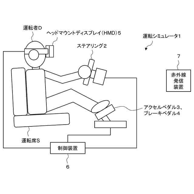 本発明は、前述した問題点に鑑みてなされたものであり、その目的とすることは、VR空間における模擬運転でもVR酔いの発生を低減でき、被検者の運転能力の客観的かつ定量的な評価を支援できる運転シミュレータを提供することである。