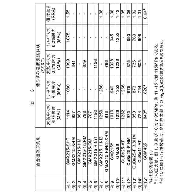 )で行う低ひずみ速度引張(SSRT:Slow Strain Rate Tensile)試験において、水素ガス中での引張強度が520MPa以上であり、かつ、RRA(相対絞り)が0.8以上である銅合金接合体が開示されている。