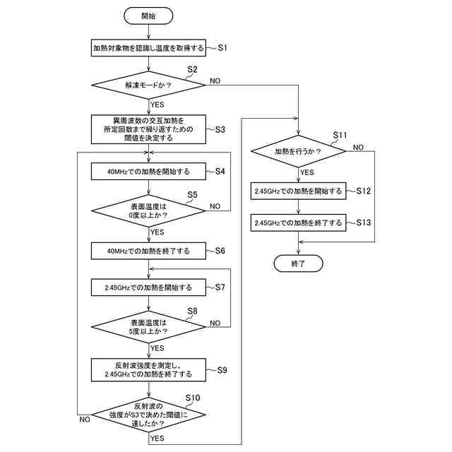 上記した特許文献1においては、最初にマイクロ波加熱を行い、次に誘電加熱を行うことによって、マクロ波加熱と誘電加熱が交互に繰り返される。この技術によれば、マイクロ波加熱が、加熱処理の最初に、凍っている加熱対象物に対して実行される。この場合、凍っている加熱対象物は、マイクロ波のエネルギーを吸収するため、解凍されない。その結果、マイクロ波のエネルギーが無駄に消費されるため、加熱大賞物の解凍時間が長くなってしまう。