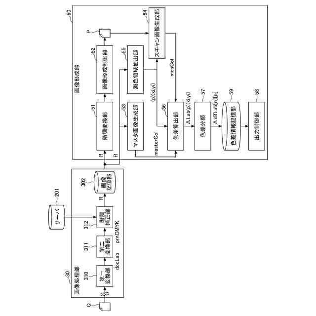 順番に印刷される複数の画像ごとに、当該画像を印刷した場合の理論的な色情報を有するマスタ画像を生成するマスタ画像生成部と、